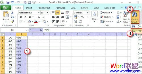 在“查找”框中输入“=”,“替换”框中也输入“=”,“确定”。