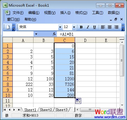 Excel自动求积方法: